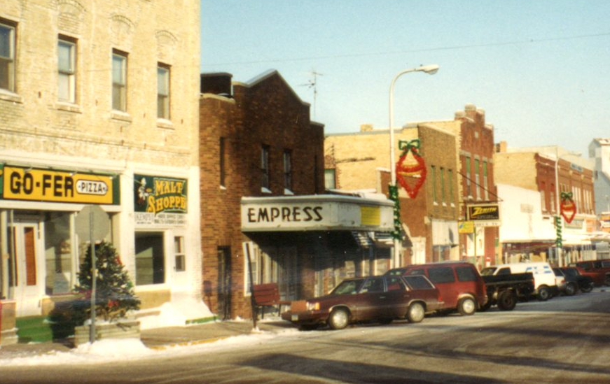 Empress Theater, Osakis, MN. This old movie theater stood in the middle of the main commercial block in Osakis. It was vacant for a number of years and left to deteriorate. Given its important location in the heart of the small resort town, and its historic use as a community gathering place, McMahon proposed that it be renovated and repurposed. Seeing little interest from civic leaders, McMahon filed a lawsuit which was quickly dismissed. The building was demolished, leaving a gaping hole in the streetscape for the past twenty years.