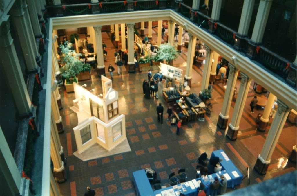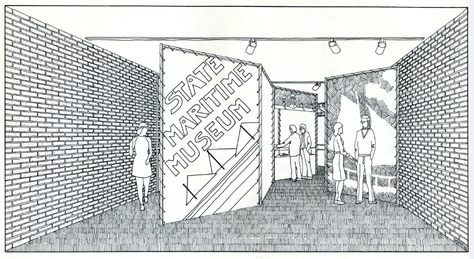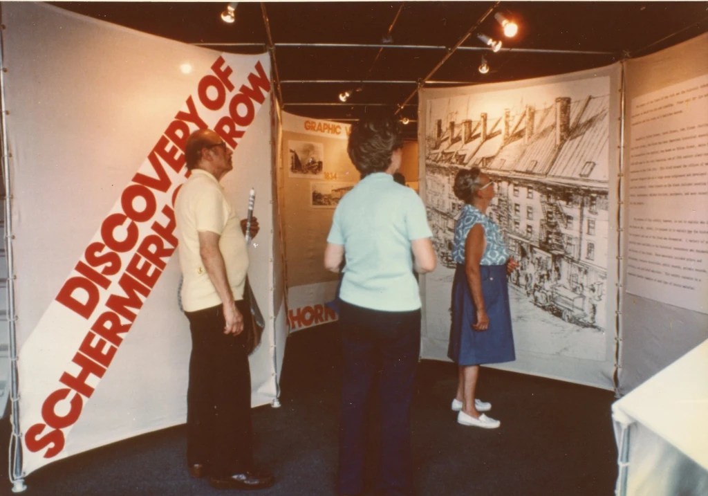 Brian McMahon worked as Restoration Coordinator for the State of New York on the South Street Seaport project in lower Manhattan in the mid- 1970s. The state acquired the Schermerhorn Row block with intentions of creating a maritime museum. Most of the twenty-three buildings on the square block were occupied on the first floor by commercial tenants associated with the Fulton Fish Market. The upper floors were partially occupied by artists, among them, noted sculptor Mark di Suvero. Some of the upper floors were vacant and had been sealed off. McMahon’s first responsibility was property management, doing a thorough occupancy survey and an initial study to determine the condition of the buildings. Over the next several years the state retained museum planning firms and restoration architects to do planning studies. During that time McMahon developed and designed interim exhibits relating to the history of the block and the planning process being undertaken by the state. Four years into the project, the state decided it would abandon the expensive plans for a museum and would sell the block to the Rouse Company to redevelop it as a commercial venture. McMahon worked with a team of consultants to publish several historic structures reports that would include guidelines for the upcoming renovations.