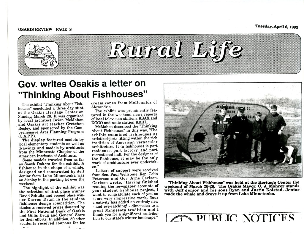 Thinking About Fishhouses, Heritage Center, Osakis, MN, 1993